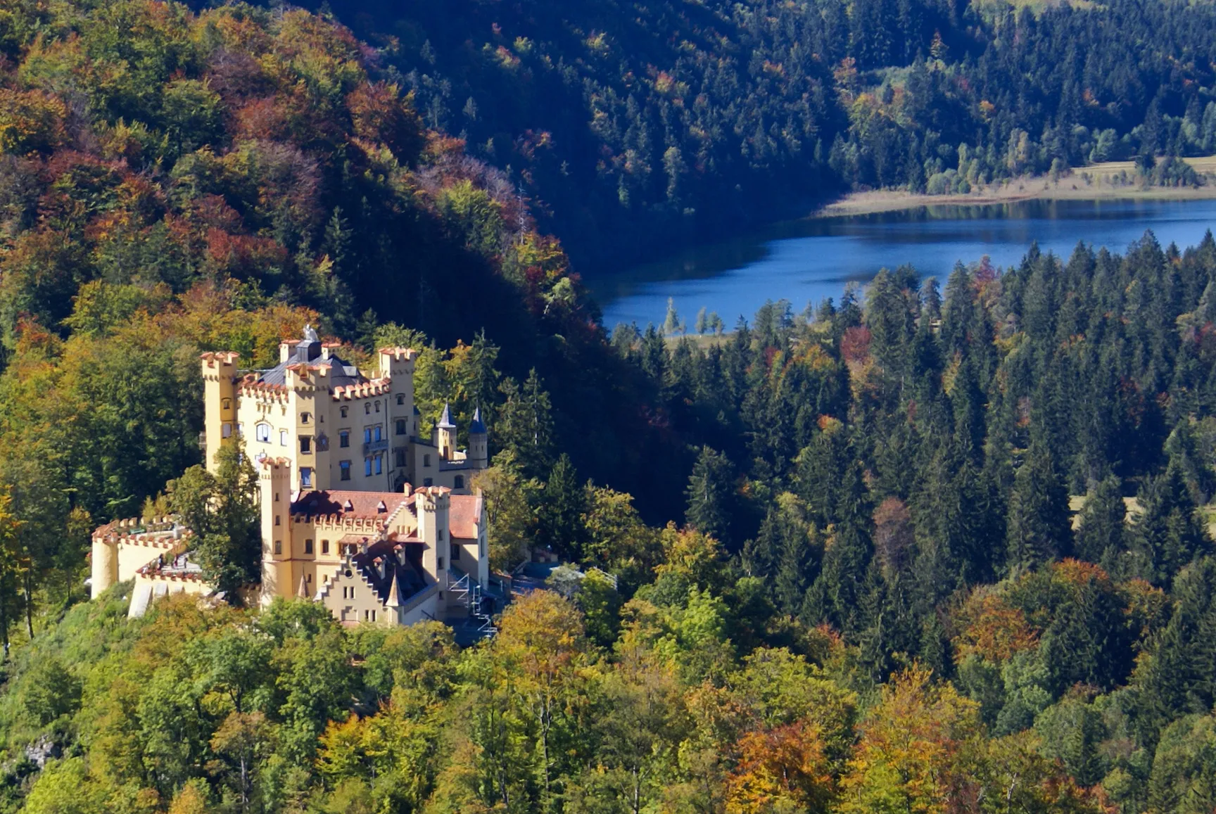 Muy cerca se encuentra el Castillo de Hohenschwangau, residencia de la infancia del Rey Luis II de Baviera. También puedes visitar el Tegelbergbahn (teleférico) para disfrutar de vistas panorámicas, dar un paseo por el desfiladero de Pöllat (Pöllatschlucht) o visitar la encantadora ciudad de Füssen, con su casco antiguo medieval y el monasterio de St. Mang. La región de Allgäu ofrece muchas oportunidades para practicar senderismo y ciclismo.