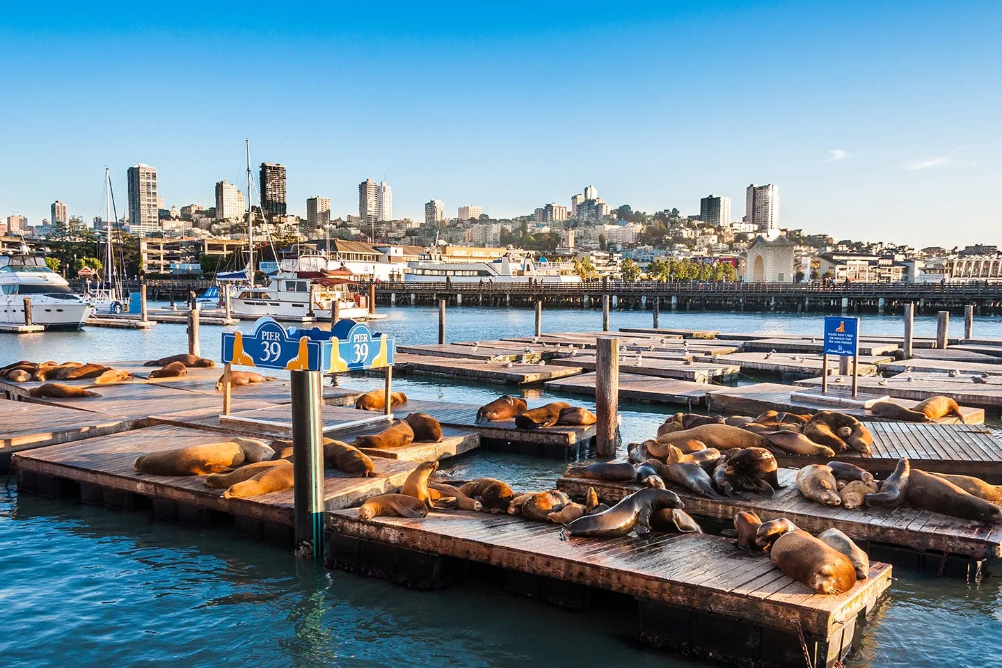 El Muelle 39 es un icónico centro turístico en San Francisco, conocido por sus leones marinos residentes, atracciones familiares y vistas espectaculares de la bahía.