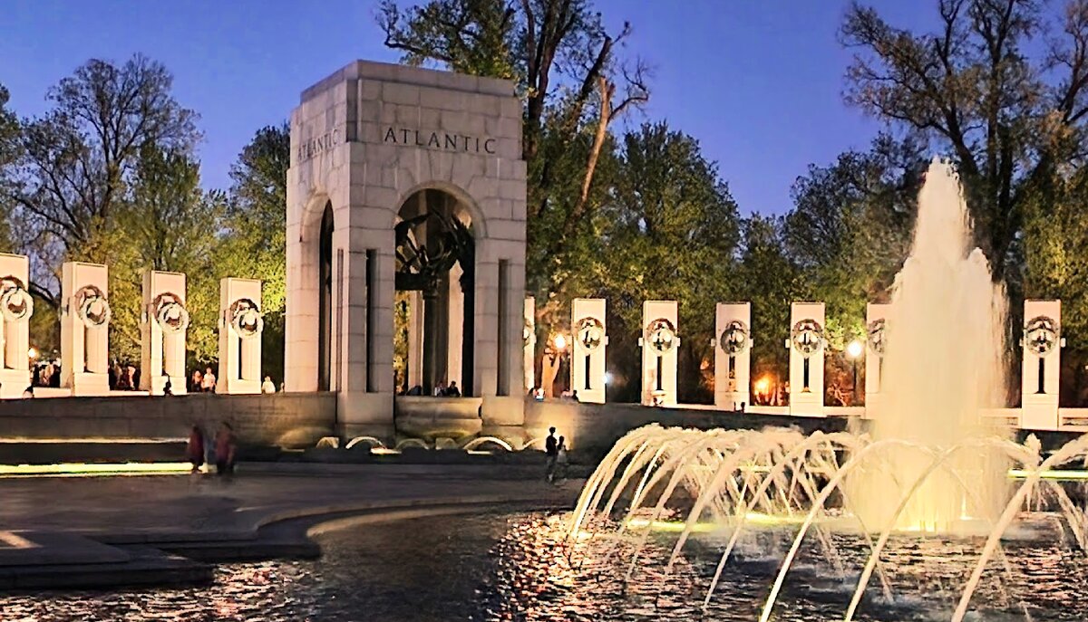 Este memorial honra a los 16 millones de estadounidenses que sirvieron en la Segunda Guerra Mundial y a los más de 400.000 que perdieron la vida, simbolizando el sacrificio y la victoria en el conflicto que moldeó el siglo XX. Inaugurado en 2004, representa unidad y paz a través de sus 56 pilares que representan a los estados y territorios de EE.UU.