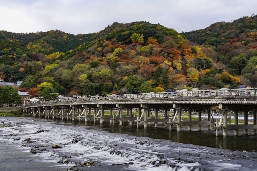 Un distrito de Kioto, famoso por su bosque de bambú, templos históricos y el pintoresco puente Togetsukyo, que encapsula la belleza natural y cultural de Japón.