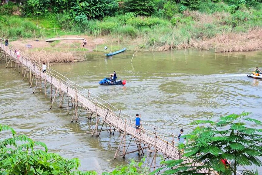 El Puente de Bambú es un símbolo de la ingenuidad y resiliencia local, ya que se construye y se desmonta anualmente de forma manual por los lugareños para adaptarse a la crecida del río Nam Khan durante la temporada de monzones. Simboliza la conexión entre las comunidades de ambos lados del río y su adaptación a la naturaleza.