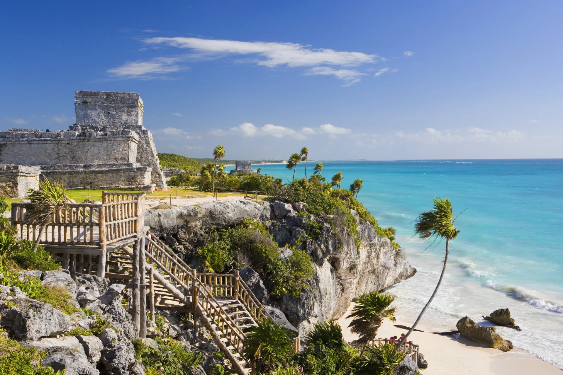 El terreno en las Ruinas de Tulum puede ser un poco irregular con caminos de tierra y piedra, y hay algunas escaleras para acceder a ciertas estructuras. Sin embargo, muchas áreas principales son accesibles y se puede disfrutar de las vistas. Es recomendable ir acompañado o preguntar en la entrada por rutas alternativas. Consulta en el sitio del INAH para información específica sobre accesibilidad.