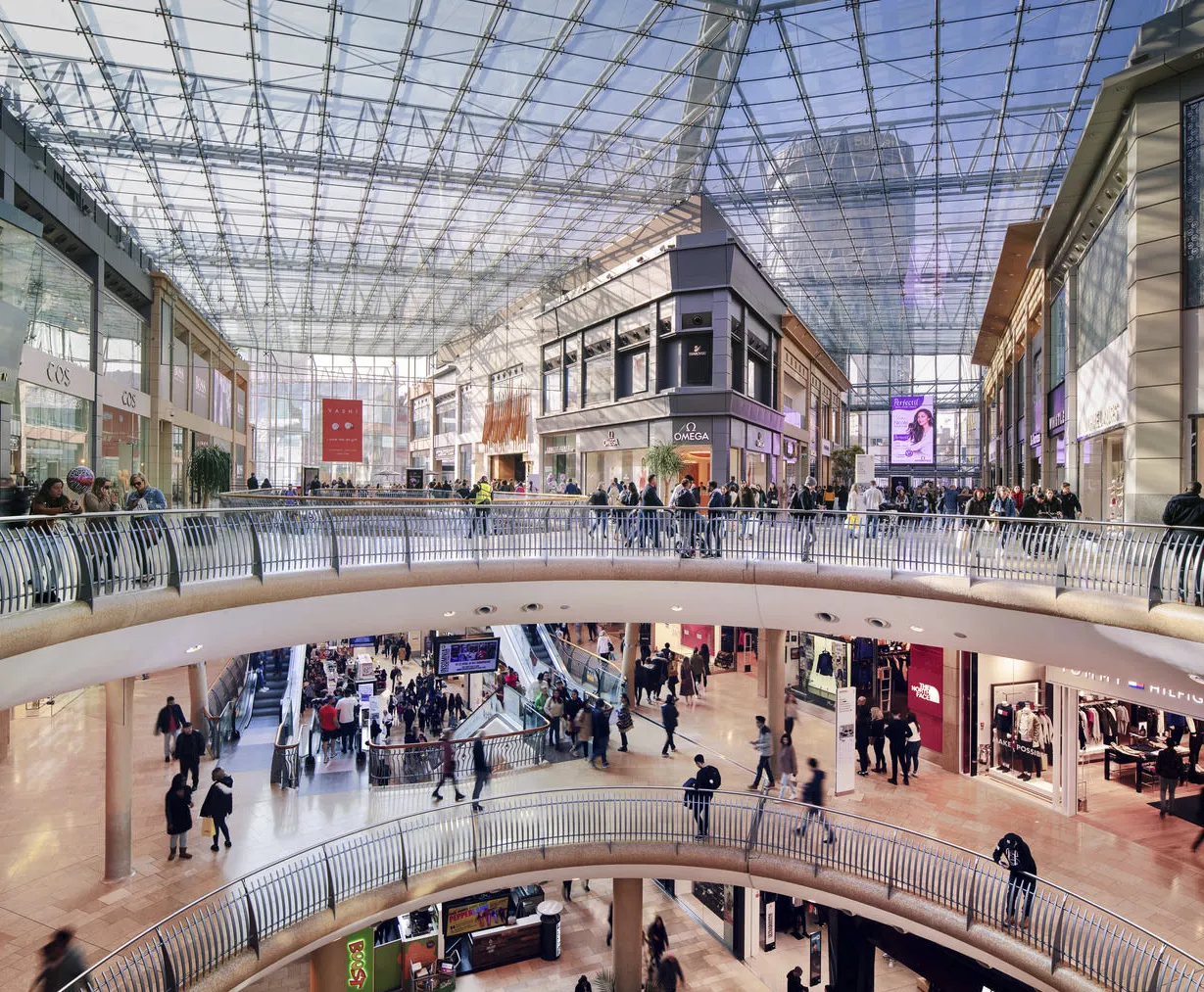 Bullring ha sido un mercado vital en Birmingham durante siglos, desde la Edad Media. El actual complejo es una reinvención moderna de ese legado, combinando una arquitectura vanguardista con la historia comercial de la ciudad. Grand Central, por su parte, se asienta sobre la histórica estación New Street, siendo un nexo de comunicación y comercio moderno. Ambos simbolizan la evolución de Birmingham como ciudad comercial.