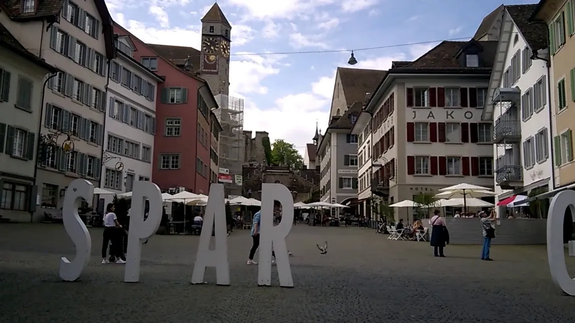 La vibrante Calle Mayor Plaza Principal, el corazón palpitante de Rapperswil, donde la historia y la vida moderna se entrelazan.