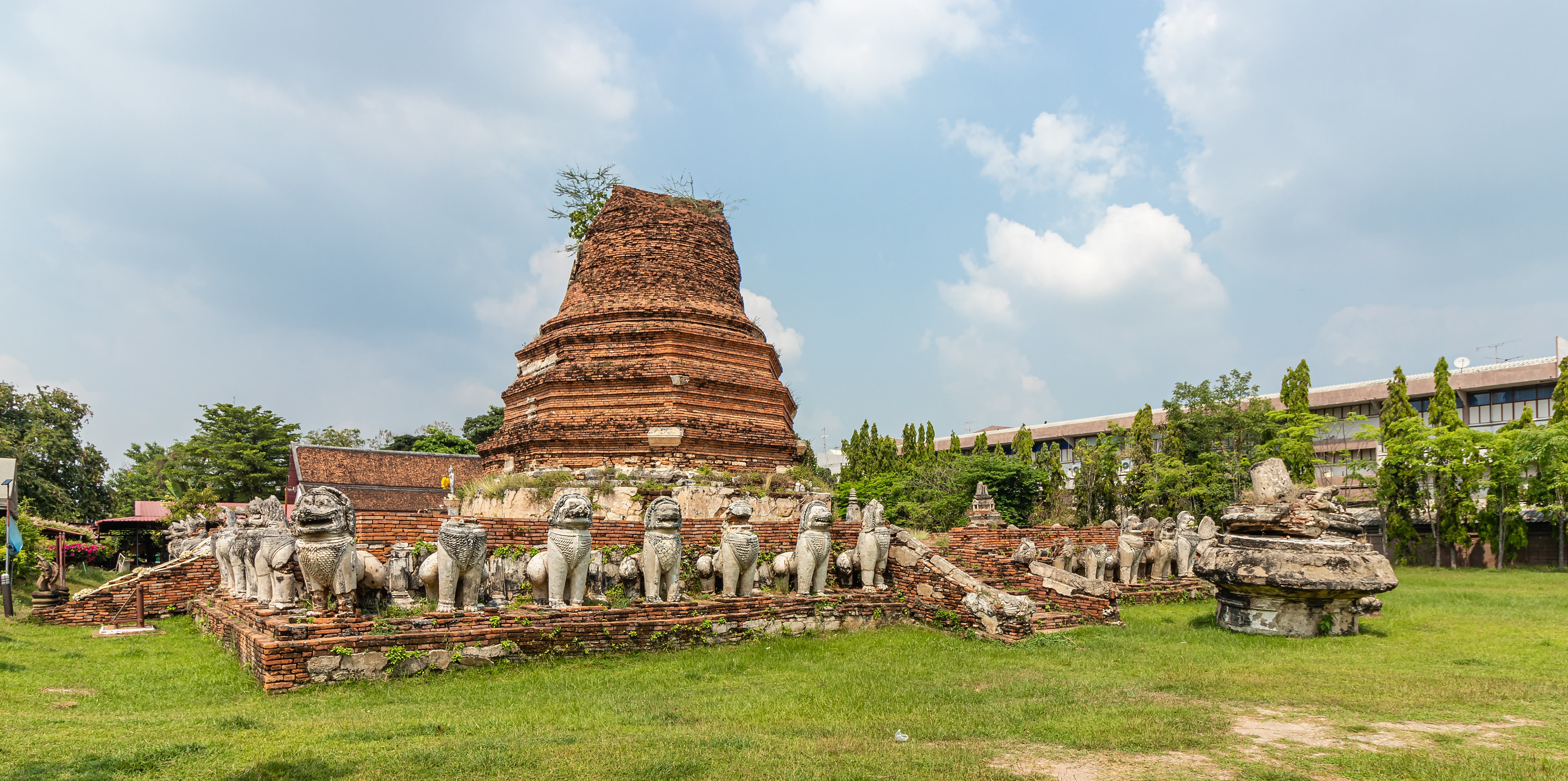 Wat Thammikarat es uno de los templos más antiguos de Ayutthaya, fundado antes de que la ciudad fuera la capital del reino. Es famoso por su distintivo chedi en forma de león y el santuario que alberga una enorme imagen de Buda reclinado. Su importancia radica en su antigüedad y las leyendas que lo rodean, ofreciendo una ventana única al pasado y la arquitectura temprana de Ayutthaya.